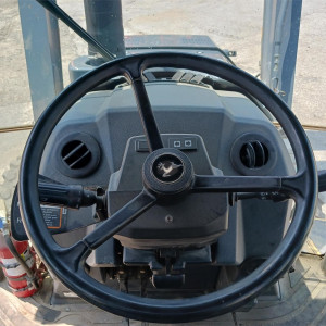 With pneumatic tires and a lowered height of 132 inches, this backhoe loader offers stability and adaptability for various terrains.