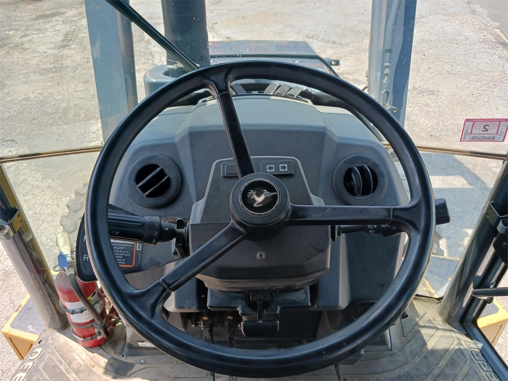 The enclosed cab is equipped with both heating and air conditioning, ensuring operator comfort year-round.